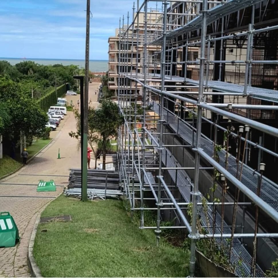 Somos especialistas em soluções para trabalhos em altura, garantindo estrutura segura e montagem profissional para sua obra!